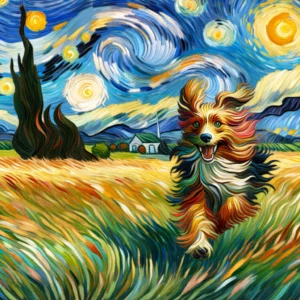 Aby wygenerować grafikę z pomocą DALL-E 3 z poziomu ChatuGPT wystarczy, że wprowadzimy odpowiednie polecenie. Polecam rozpocząć od “Wygeneruj grafikę”, a następnie ogranicza Cię już tylko Twoja wyobraźnia! Dla przykładu wygenerujmy grafikę w stylu Vincenta Van Gogha przedstawiająca psa biegającego po polu: